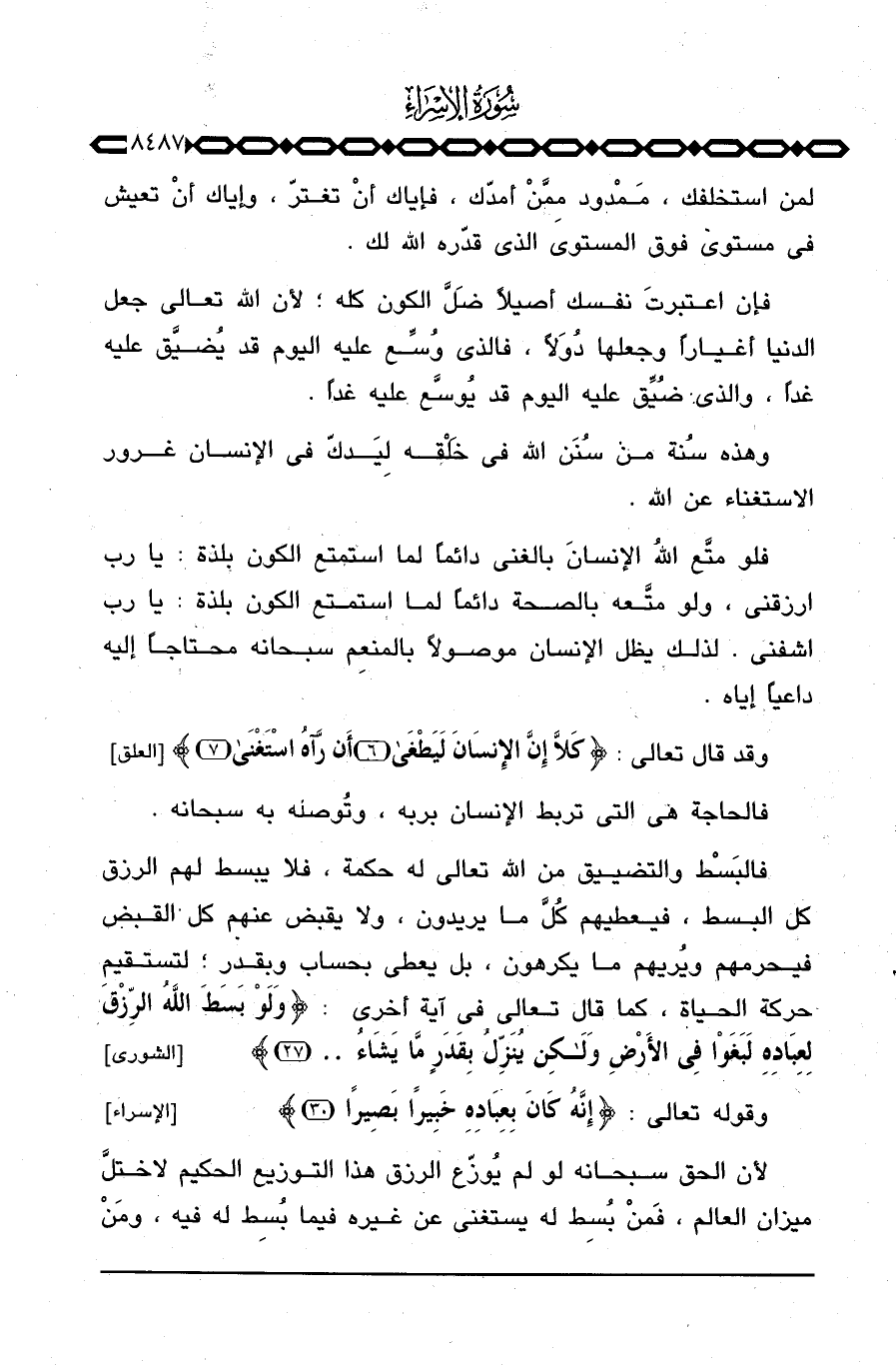 لمن استخلفك، مَمْدود مِمَّنْ أمدّك، فإياك أنْ تغتر، وإياك أنْ تعيش في مستوى فوق المستوى الذي قدّره الله لك.