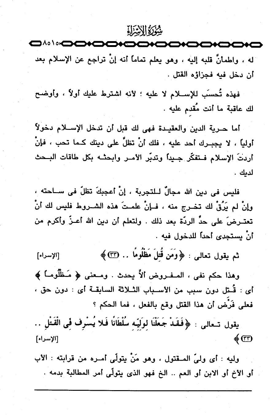 يقول تعالى: {فَقَدْ جَعَلْنَا لِوَلِيِّهِ سُلْطَاناً فَلاَ يُسْرِف فِّي القتل. .} [الإسراء: 33]
