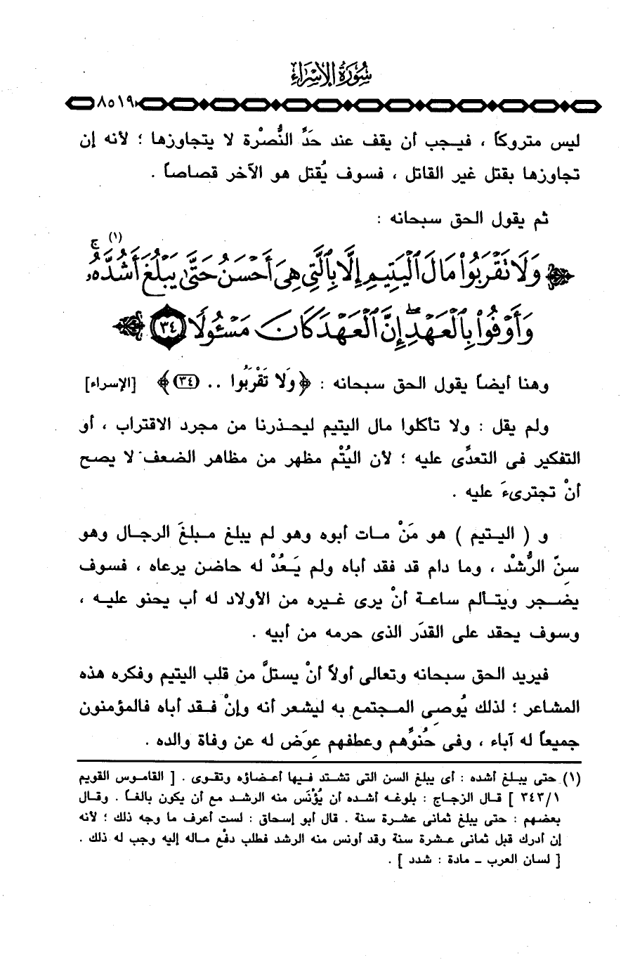 ولم يقل: ولا تأكلوا مال اليتيم ليحذرنا من مجرد الاقتراب، أو التفكير في التعدِّي عليه؛ لأن اليُتْم مظهر من مظاهر الضعف لا صح أنْ تجترئَ عليه.