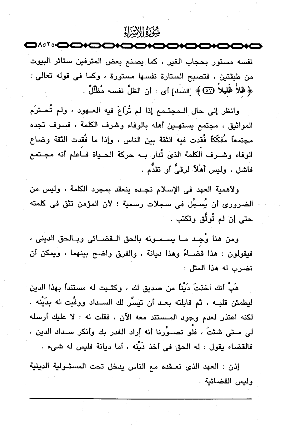 إذن: العهد الذي نعقده مع الناس يدخل تحت المسئولية الدينية وليس القضائية.