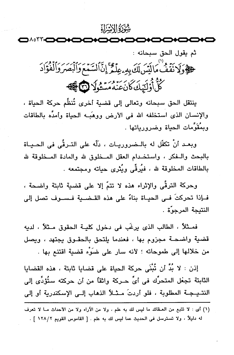ثم يقول الحق سبحانه: {وَلاَ تَقْفُ مَا لَيْسَ لَكَ بِهِ عِلْمٌ ... } .
