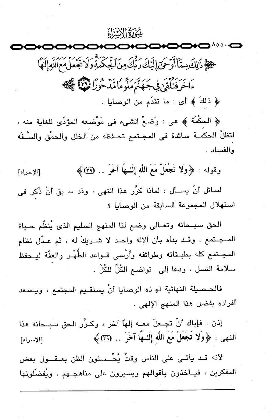 {ذَلِكَ مِمَّآ أوحى إِلَيْكَ رَبُّكَ مِنَ الحكمة ... } .