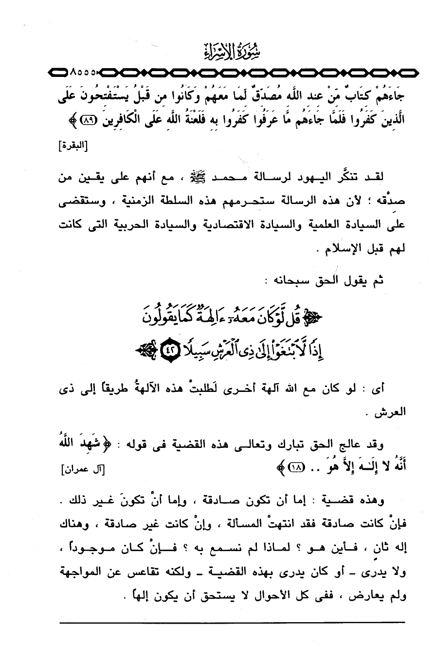 وهذه قضية: إما أنْ تكونَ صادقة، وإما أن تكون غير ذلك. فإنْ كانت صادقة فقد انتهتْ المسألة، وإنْ كانت غير صادقة، وهناك إله ثانٍ، فأين هو؟ لماذا لم نسمع به؟ فإنْ كان موجوداً، ولا يدري أو كان يدري بهذه القضية ولكنه تقاعس عن المواجهة ولم يعارض، ففي كل الأحوال لا يستحق أن يكون إلهاً.