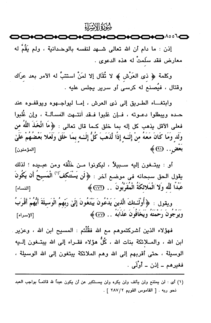 فهؤلاء الذين أشركتموهم مع الله فقُلْتم: المسيح ابن الله، وعزيز ابن الله، والملائكة بنات الله، كُلُّ هؤلاء فقراء إلى الله يبتغون إليه الوسيلة، حتى أقربهم إلى الله وهم الملائكة يبتغون إلى الله الوسيلة فغيرهم إذن أَوْلَى.