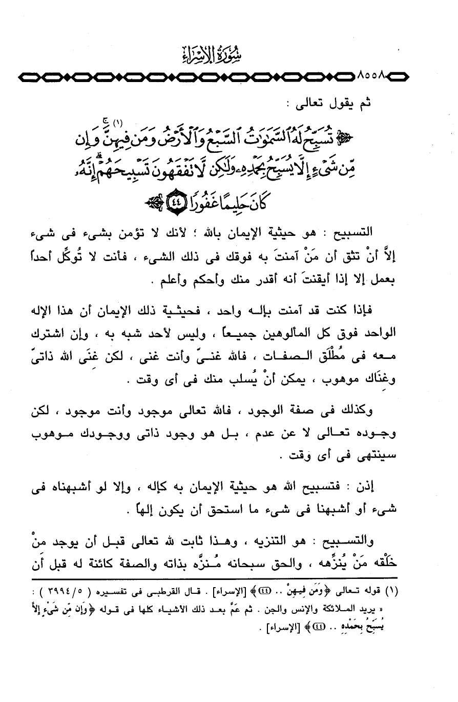 إذن: فتسبيح الله هو حيثية الإيمان به كإله، وإلا لو أشبهناه في شيء أو أشبهنا في شيء ما استحق أن يكون إلهاً.