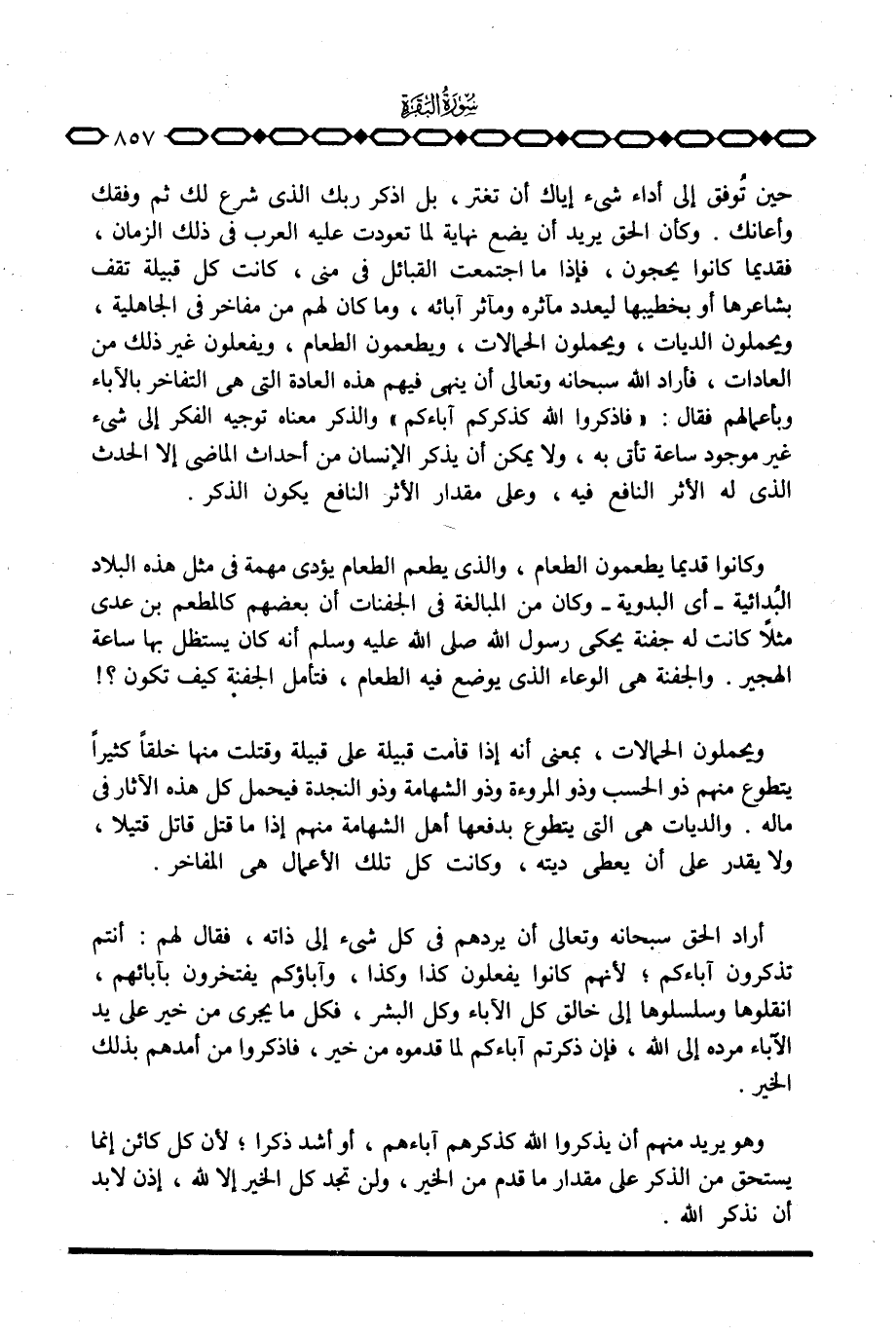 أراد الحق سبحانه وتعالى أن يردهم في كل شيء إلى ذاته، فقال لهم: أنتم تذكرون آباءكم؛ لأنهم كانوا يفعلون كذا وكذا، وآباؤكم يفتخرون بآبائهم، انقلوها وسلسلوها إلى خالق كل الآباء وكل البشر، فكل ما يجري من خير على يد الآباء مرده إلى الله، فإن ذكرتم آباءكم لما قدموه من خير، فاذكروا من أمدهم بذلك الخير.