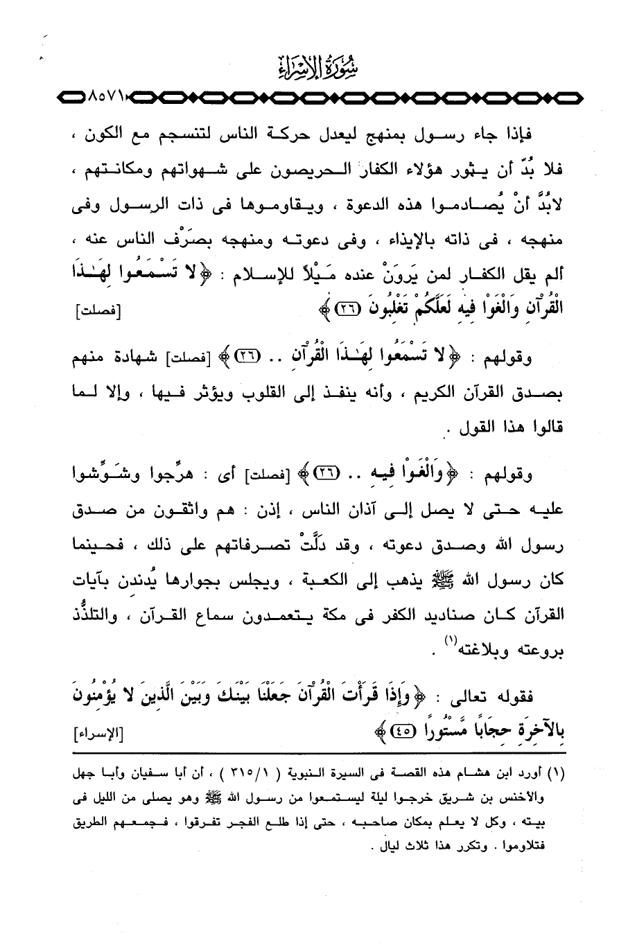 فقوله تعالى: {وَإِذَا قَرَأْتَ القرآن جَعَلْنَا بَيْنَكَ وَبَيْنَ الذين لاَ يُؤْمِنُونَ بالآخرة حِجَاباً مَّسْتُوراً} [الإسراء: 45]