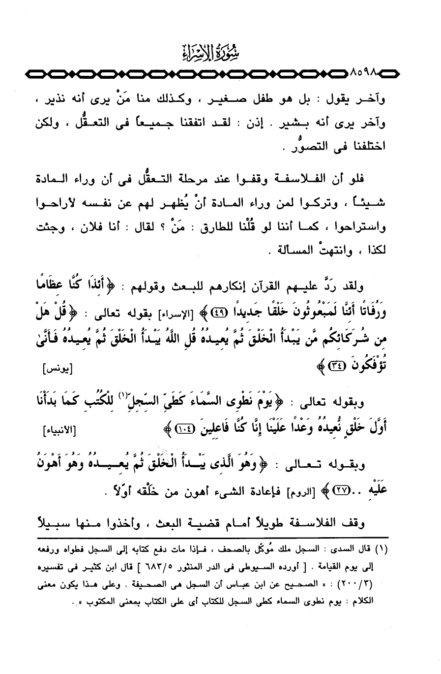 وبقوله تعالى: {يَوْمَ نَطْوِي السمآء كَطَيِّ السجل لِلْكُتُبِ كَمَا بَدَأْنَآ أَوَّلَ خَلْقٍ نُّعِيدُهُ وَعْداً عَلَيْنَآ إِنَّا كُنَّا فَاعِلِينَ} [الأنبياء: 104]