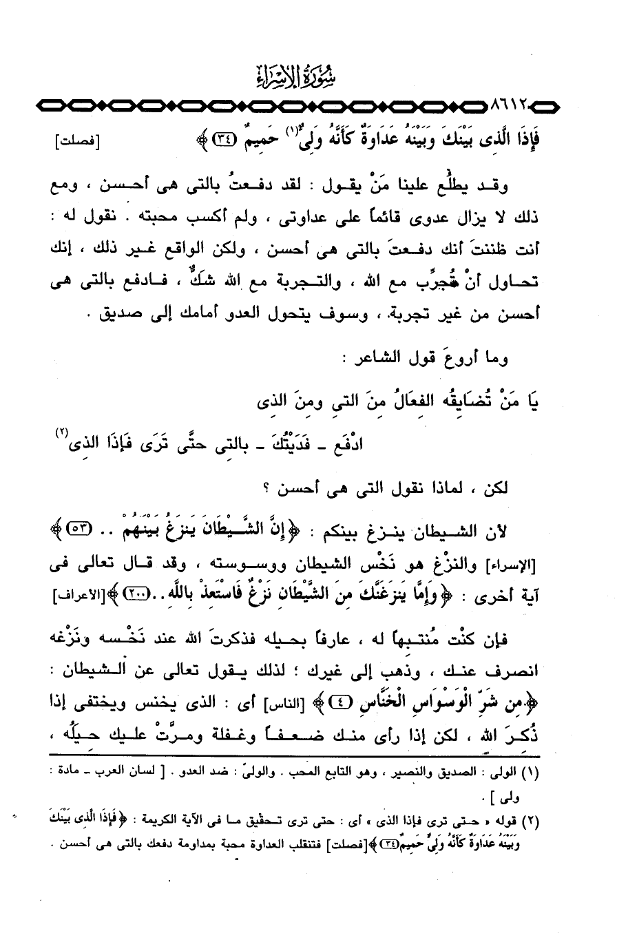 فَإِذَا الذي بَيْنَكَ وَبَيْنَهُ عَدَاوَةٌ كَأَنَّهُ وَلِيٌّ حَمِيمٌ} [فصلت: 34]