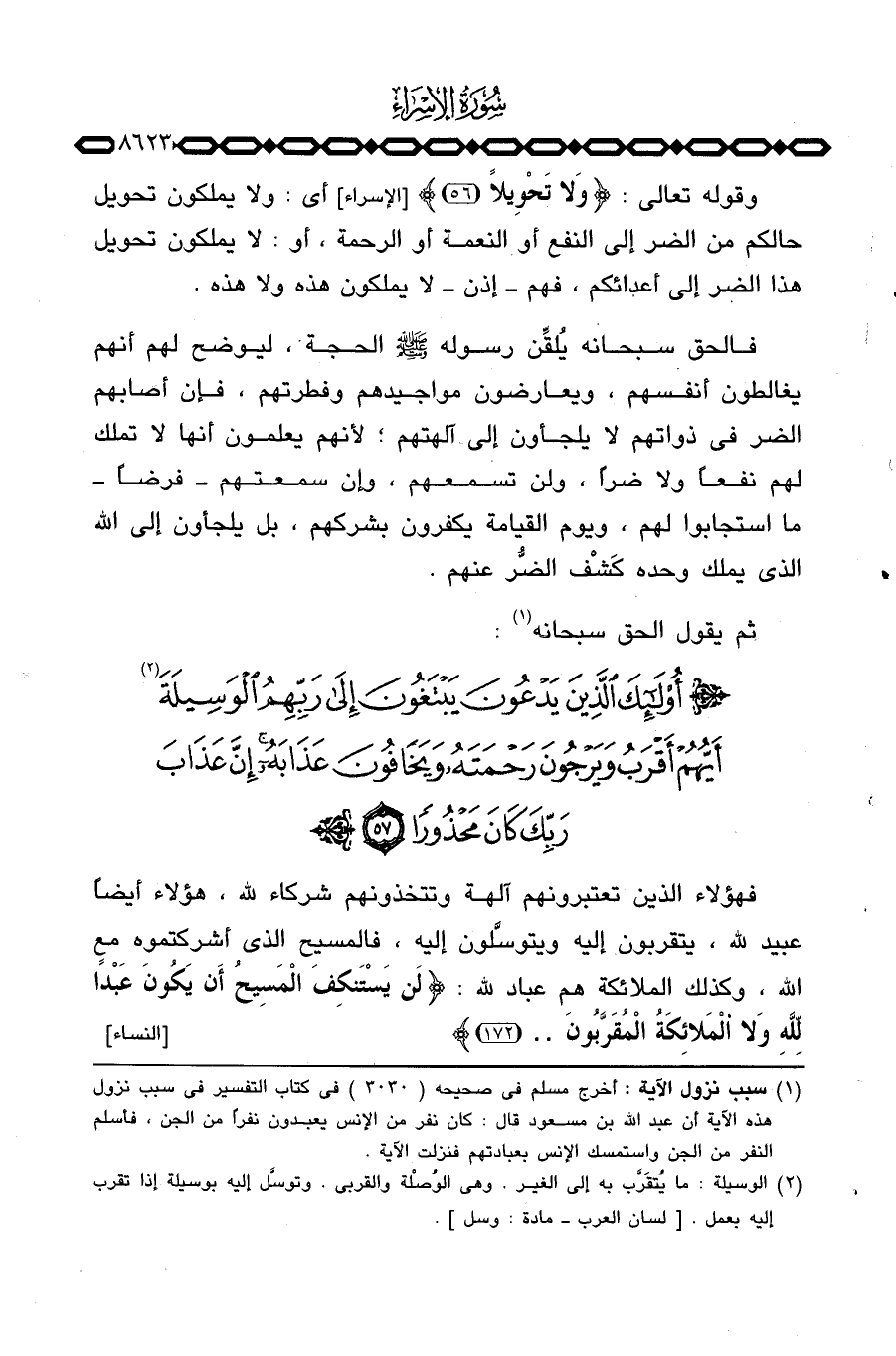 وقوله تعالى: {وَلاَ تَحْوِيلاً} [الإسراء: 56] أي: ولا يملكون تحويل حالكم من الضر إلى النفع أو النعمة أو الرحمة، أو: لا يملكون تحويل هذا الضر إلى أعدائكم، فهم إذن لا يملكون هذه ولا هذه.