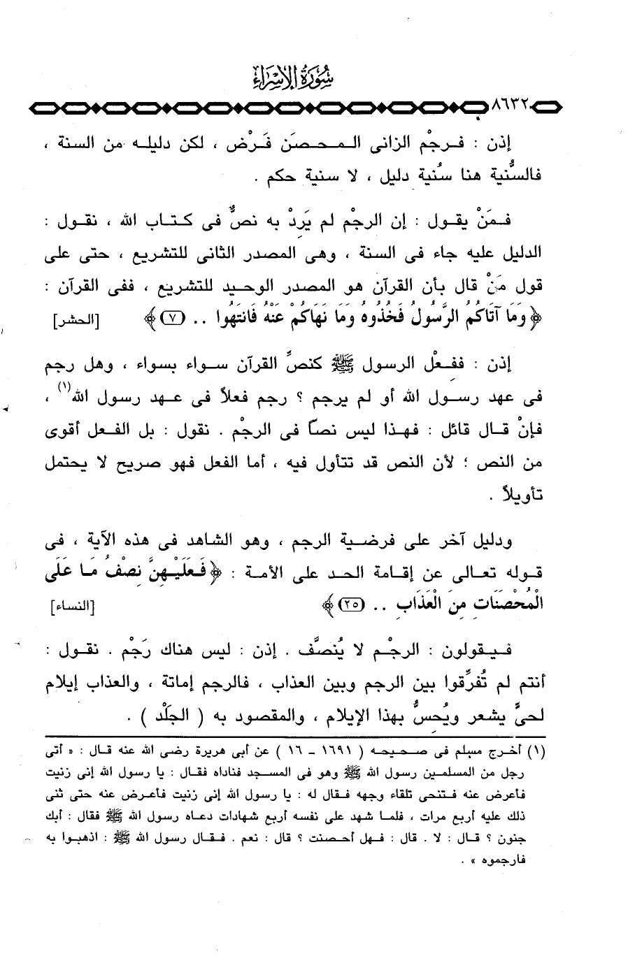 إذن: فرجْم الزاني المحصَن فَرْض، لكن دليله من السنة، فالسُّنة هنا سُنية دليل، لا سنية حكم.
