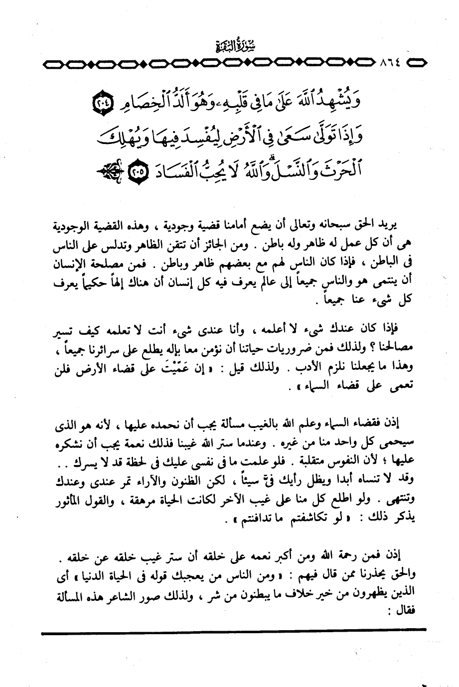 فإذا كان عندك شيء لا أعلمه، وأنا عندي شيء أنت لا تعلمه كيف تسير مصالحنا؟ ولذلك فمن ضروريات حياتنا أن نؤمن معا بإله يطلع على سرائرنا جميعاً، وهذا ما يجعلنا نلزم الأدب. ولذلك قيل: «إن عَمّيْتَ على قضاء الأرض فلن تعمى على قضاء السماء» .