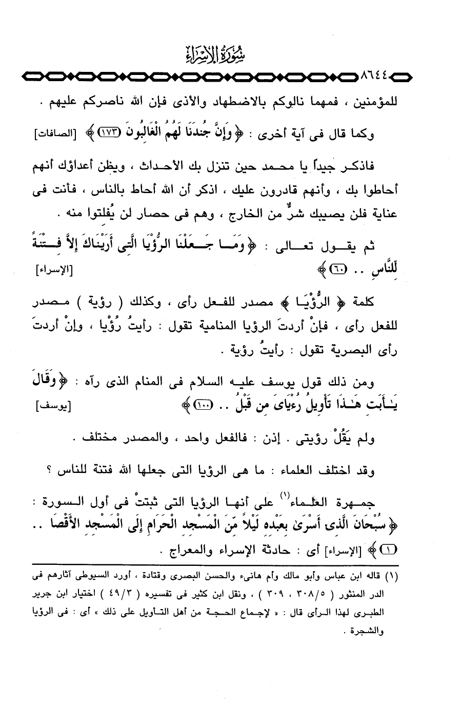 جمهرة العلماء على أنها الرؤيا التي ثبتتْ في أول السورة: {سُبْحَانَ الذي أسرى بِعَبْدِهِ لَيْلاً مِّنَ المسجد الحرام إلى المسجد الأقصى} [الإسراء: 1] أي: حادثة الإسراء والمعراج.