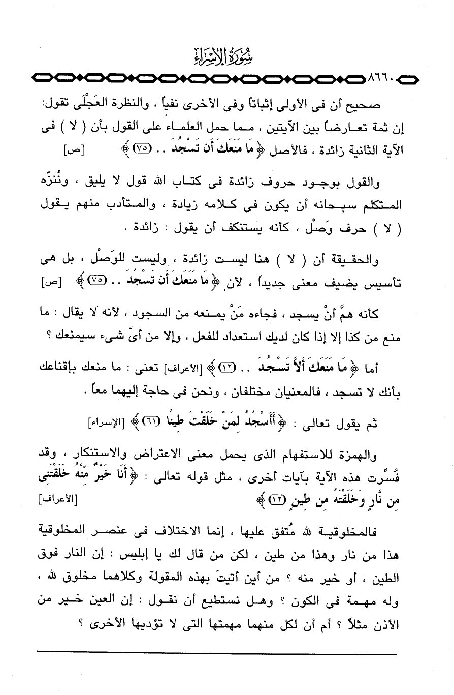 صحيح أن في الأولى إثباتاً وفي الأخرى نفياً، والنظرة العَجْلَى تقول: إن ثمة تعارضاً بين الآيتين، مما حمل العلماء على القول بأن (لا) في الآية الثانية زائدة، فالأصل {مَا مَنَعَكَ أَن تَسْجُدَ. .} [ص: 75]