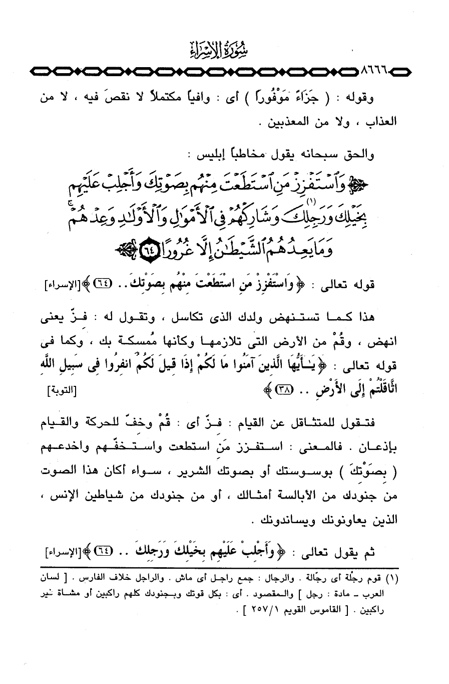 ثم يقول تعالى: {وَأَجْلِبْ عَلَيْهِم بِخَيْلِكَ وَرَجِلِكَ. .} [الإسراء: 64]