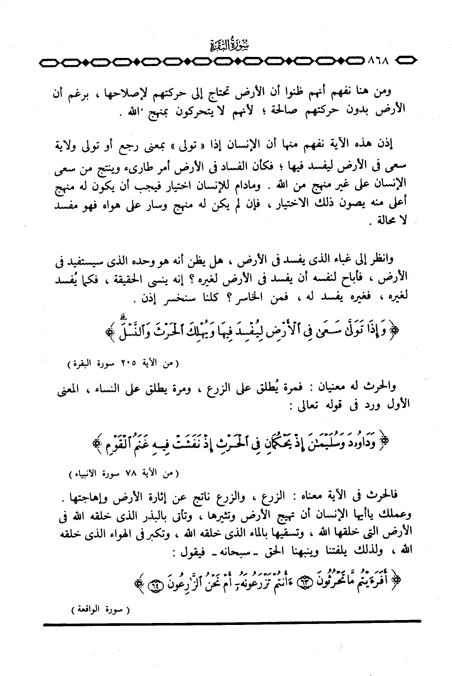{وَإِذَا تولى سعى فِي الأرض لِيُفْسِدَ فِيِهَا وَيُهْلِكَ الحرث والنسل ... } [البقرة: 205]