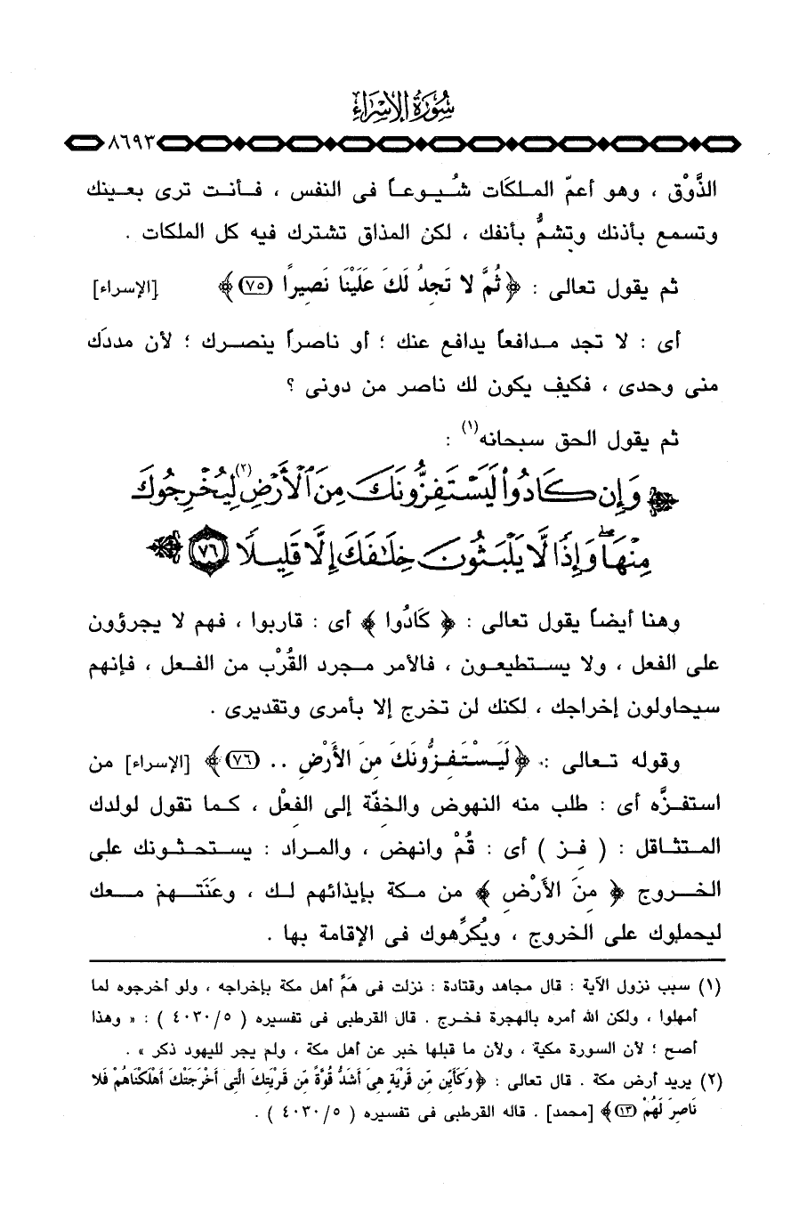 وقوله تعالى: {لَيَسْتَفِزُّونَكَ مِنَ الأرض. .} [الإسراء: 76] من استفزَّه أي: طلب منه النهوض والخِفّة إلى الفِعْل، كما تقول لولدك المتثاقل: (فِز) أي: قُمْ وانهض، والمراد: يستحثونك على الخروج {مِنَ الأرض} من مكة بإيذائهم لك، وعَنَتهم معك ليحملوك على الخروج، ويُكرِّهوك في الإقامة بها.