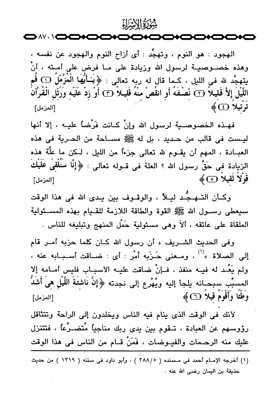 وفي الحديث الشريف «أن رسول الله كان كلما حزبه أمر قام إلى الصلاة» ، ومعنى حَزَبه أَمْر: أي: ضاقت أسبابه عنه، ولم يَعُد له فيه منفذ، فإنْ ضاقت عليه الأسباب فليس أمامه إلا المسبِّب سبحانه يلجأ إليه ويُهْرع إلى نجدته {إِنَّ نَاشِئَةَ الليل هِيَ أَشَدُّ وَطْأً وَأَقْوَمُ قِيلاً} [المزمل: 6]