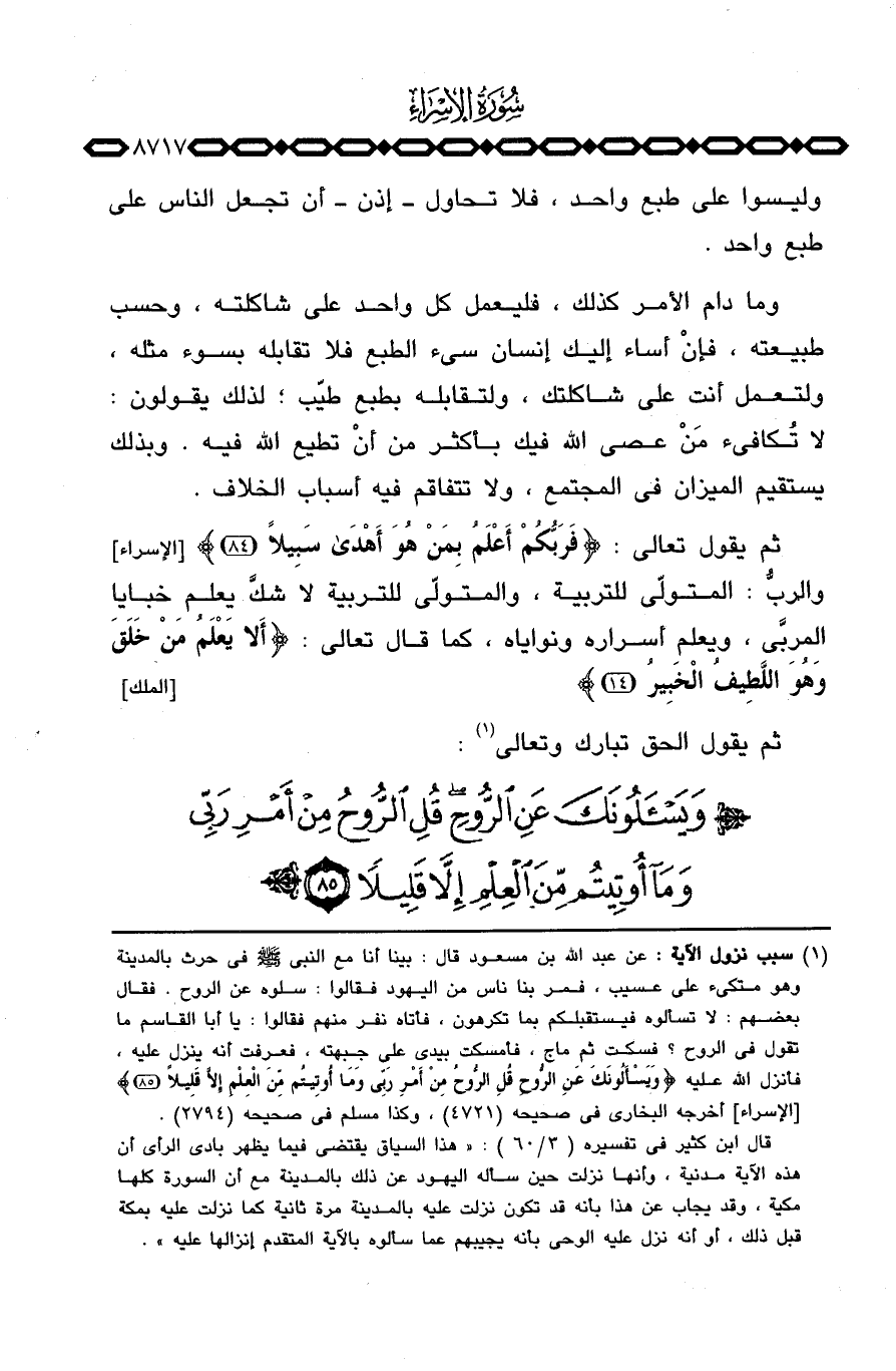 ثم يقول تعالى: {فَرَبُّكُمْ أَعْلَمُ بِمَنْ هُوَ أهدى سَبِيلاً} [الإسراء: 84] والربُّ: المتولّي للتربية، والمتولّي للتربية لا شكّ يعلم خبايا المربَّى، ويعلم أسراره ونواياه، كما قال تعالى: {أَلاَ يَعْلَمُ مَنْ خَلَقَ وَهُوَ اللطيف الخبير} [الملك: 14]