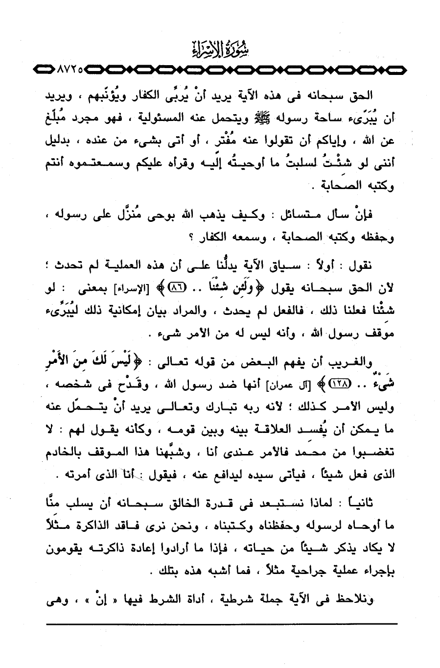 الحق سبحانه في هذه الآية يريد أنْ يُربِّي الكفار ويُؤنّبهم، ويريد أن يُبَرّئ ساحة رسوله صَلَّى اللَّهُ عَلَيْهِ وَسَلَّم َ ويتحمل عنه المسئولية، فهو مجرد مُبلّغ عن الله، وإياكم أن تقولوا عنه مُفْترٍ، أو أتى بشيء من عنده، بدليل أنني لو شِئْتُ لسلبتُ ما أوحيتُه إليه وقرأه عليكم وسمعتموه أنتم وكتبه الصحابة.