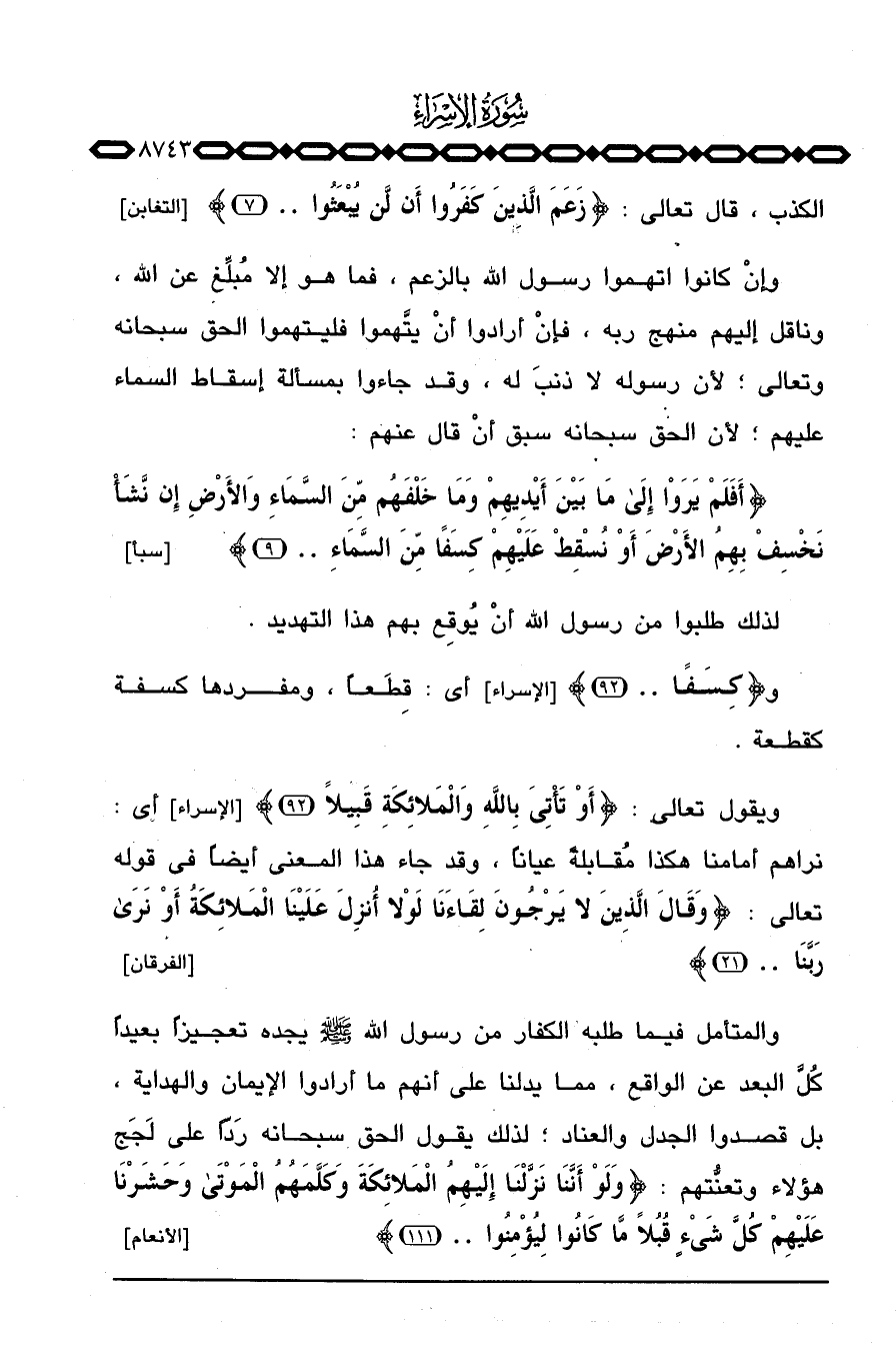 ويقول تعالى: {أَوْ تَأْتِيَ بالله والملائكة قَبِيلاً} [الإسراء: 92] أي: نراهم أمامنا هكذا مُقابلةً عياناً، وقد جاء هذا المعنى أيضاً في قوله تعالى: {وَقَالَ الذين لاَ يَرْجُونَ لِقَآءَنَا لَوْلاَ أُنْزِلَ عَلَيْنَا الملائكة أَوْ نرى رَبَّنَا. .} [الفرقان: 21]