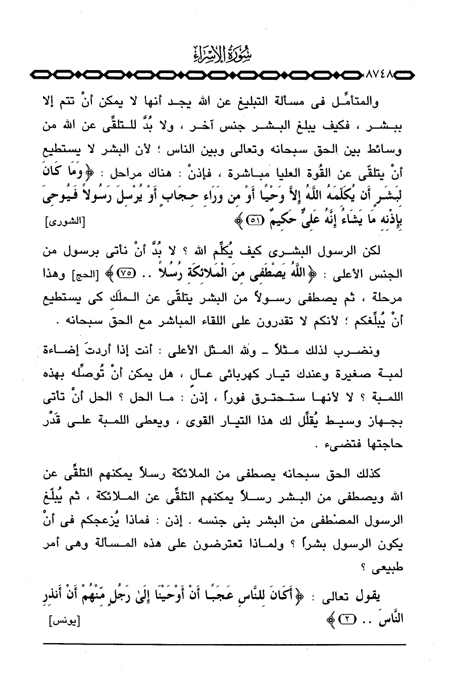 والمتأمِّل في مسألة التبليغ عن الله يجد أنها لا يمكن أنْ تتم إلا ببشر، فكيف يبلغ البشر جنس آخر، ولا بُدَّ للتلقِّي عن الله من وسائط بين الحق سبحانه وتعالى وبين الناس؛ لأن البشر لا يستطيع أنْ يتلقّى عن القُوة العليا مباشرة، فإذنْ: هناك مراحل: {وَمَا كَانَ لِبَشَرٍ أَن يُكَلِّمَهُ الله إِلاَّ وَحْياً أَوْ مِن وَرَآءِ حِجَابٍ أَوْ يُرْسِلَ رَسُولاً فَيُوحِيَ بِإِذْنِهِ مَا يَشَآءُ إِنَّهُ عَلِيٌّ حَكِيمٌ} [الشورى: 51]