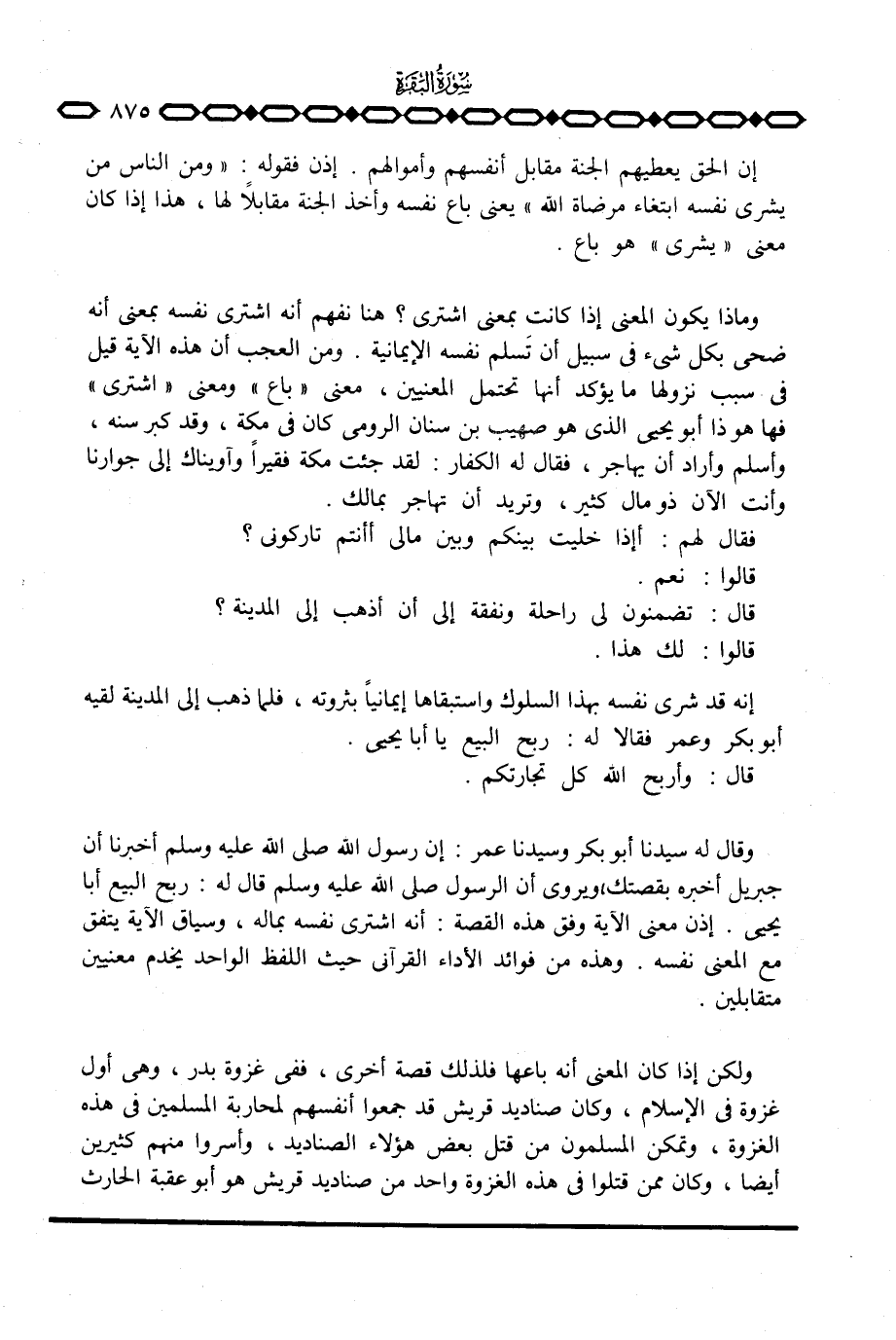 إنه قد شرى نفسه بهذا السلوك واستبقاها إيمانياً بثروته، فلما ذهب إلى المدينة لقيه أبو بكر وعمر فقالا له: ربح البيع يا أبا يحيى.