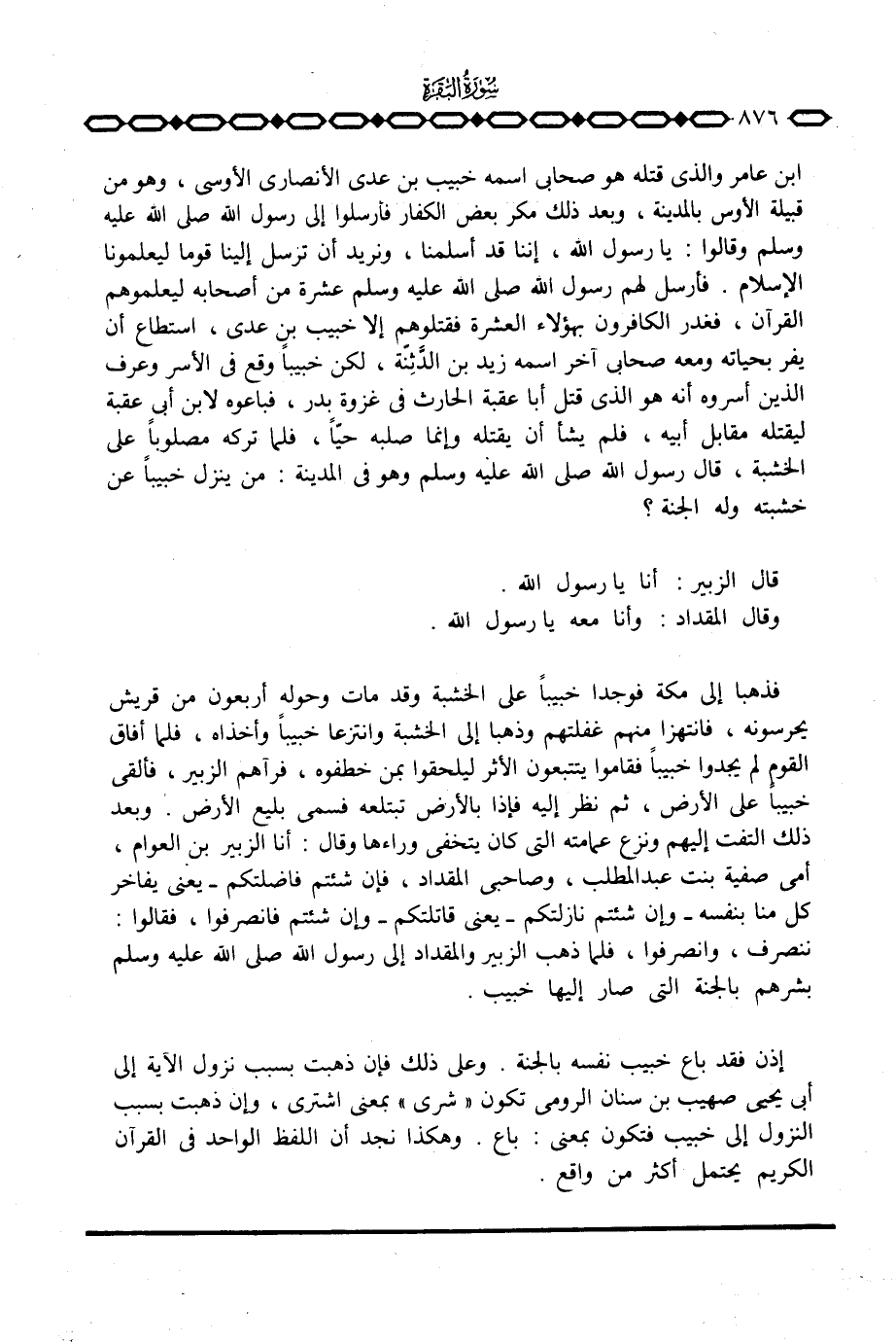 إذن فقد باع خبيب نفسه بالجنة. وعلى ذلك فإن ذهبت بسبب نزول الآية إلى أبي يحيى صهيب بن سنان الرومي تكون «شرى» بمعنى اشترى، وإن ذهبت بسبب النزول إلى خبيب فتكون بمعنى: باع.