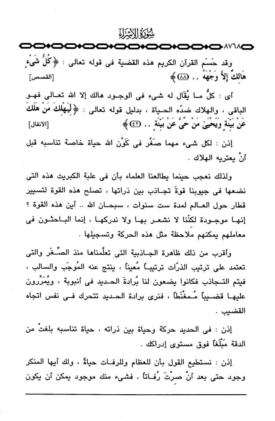 وقد حَسَم القرآن الكريم هذه القضية في قوله تعالى: {كُلُّ شَيْءٍ هَالِكٌ إِلاَّ وَجْهَهُ. .} [القصص: 88]