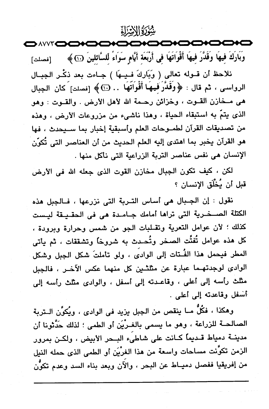 وَبَارَكَ فِيهَا وَقَدَّرَ فِيهَآ أَقْوَاتَهَا في أَرْبَعَةِ أَيَّامٍ سَوَآءً لِّلسَّآئِلِينَ} [فصلت: 9 - 10]