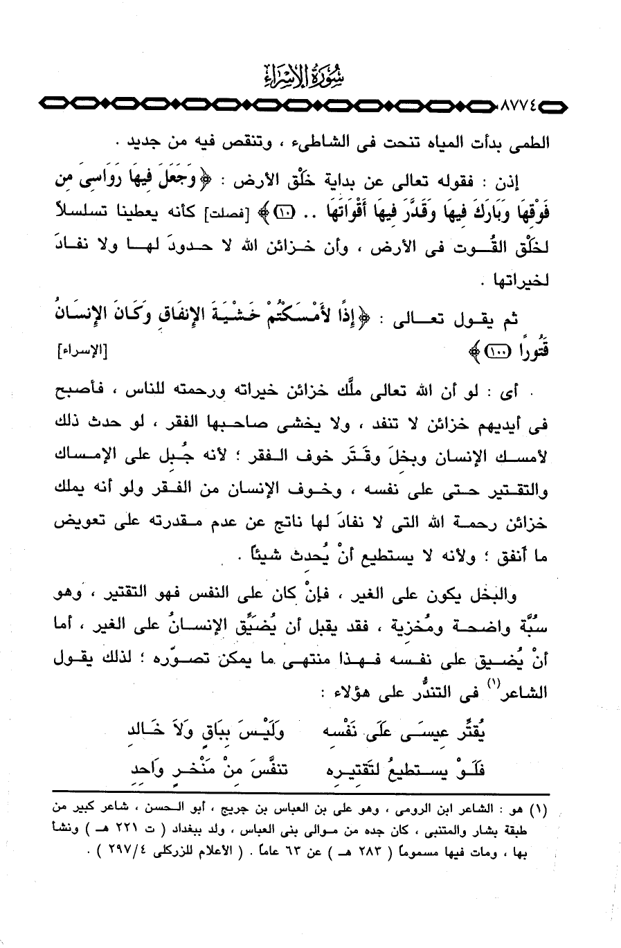 ثم يقول تعالى: {إِذاً لأمْسَكْتُمْ خَشْيَةَ الإنفاق وَكَانَ الإنسان قَتُوراً} [الإسراء: 100]
