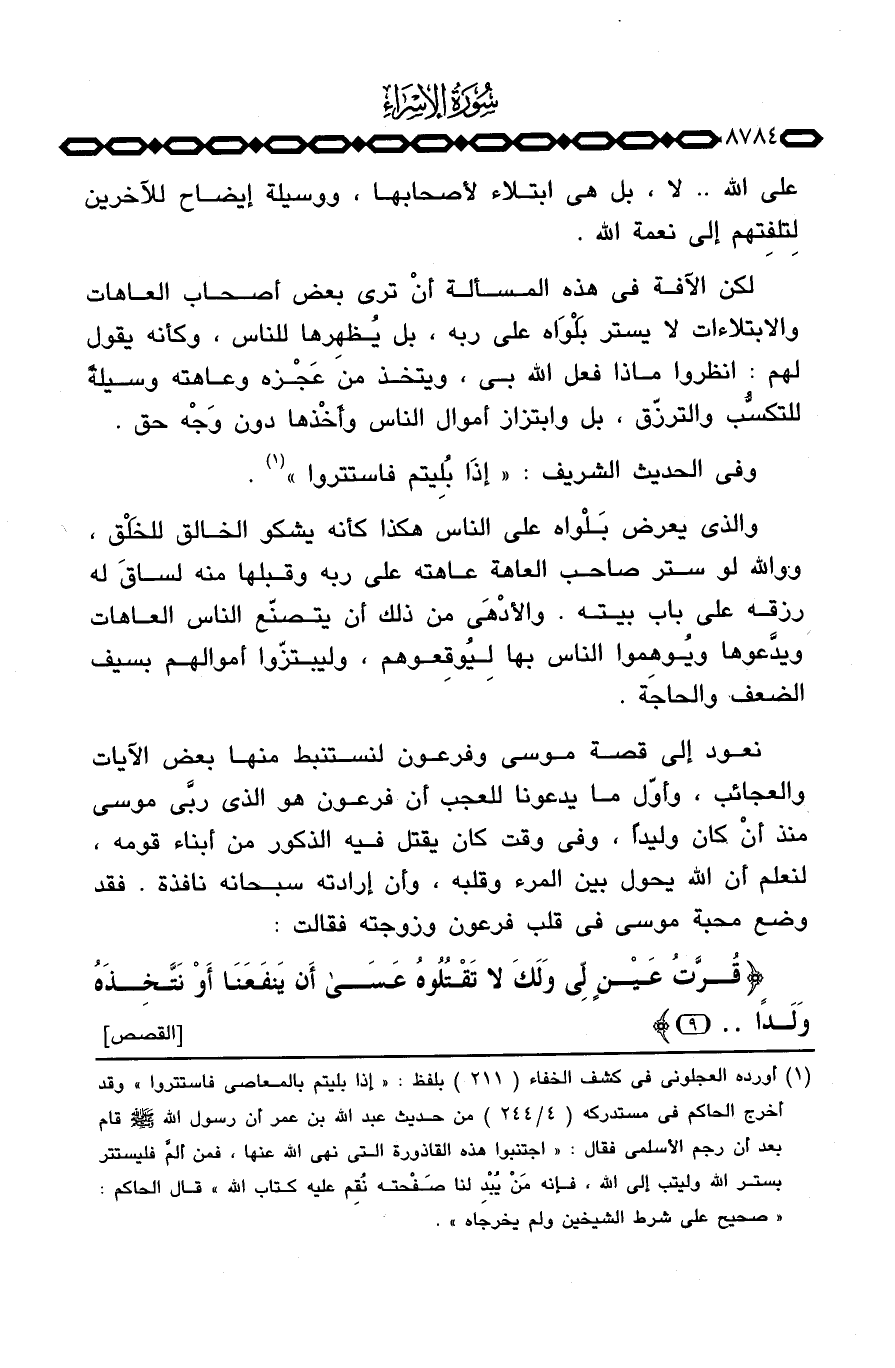 لكن الآفة في هذه المسألة أنْ ترى بعض أصحاب العاهات والابتلاءات لا يستر بَلْوَاه على ربه، بل يُظهِرها للناس، وكأنه يقول لهم: انظروا ماذا فعل الله بي، ويتخذ من عَجْزه وعاهته وسيلةً للتكسُّب والترزّق، بل وابتزاز أموال الناس وأَخْذها دون وَجْه حق.