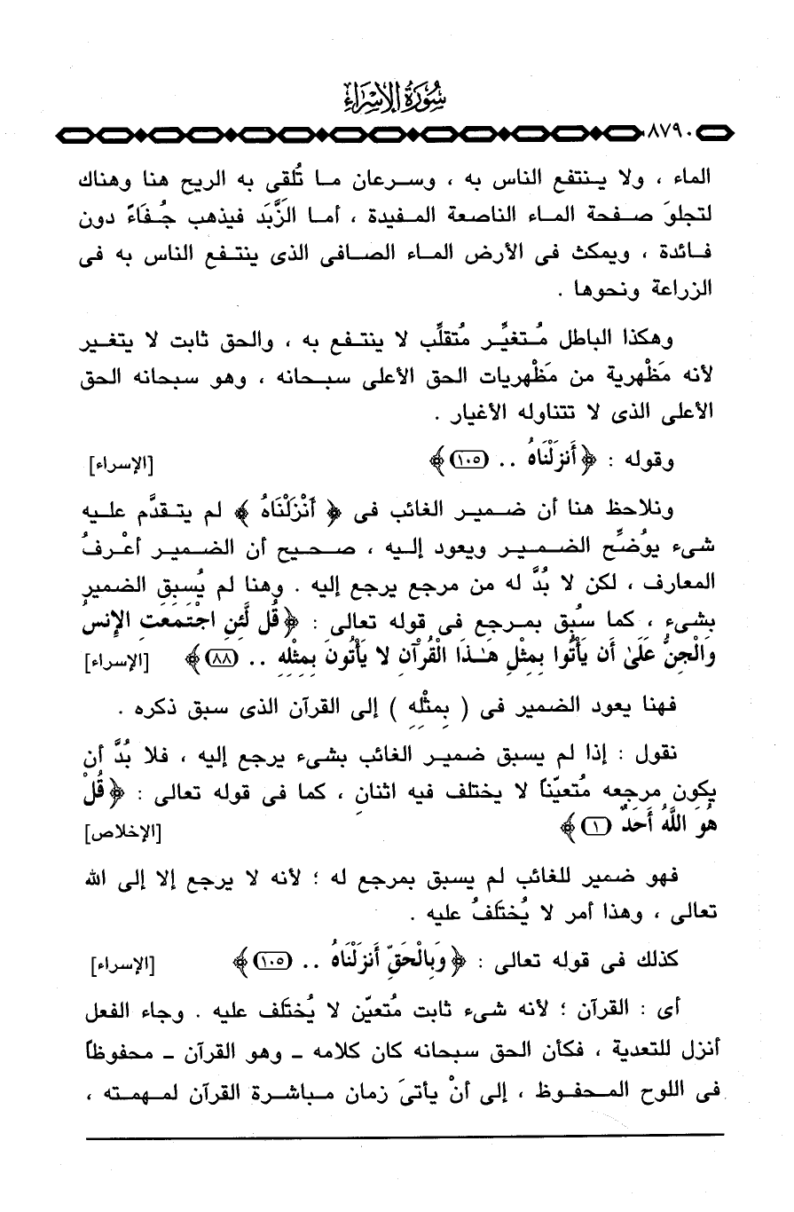 ونلاحظ هنا أن ضمير الغائب في {أَنْزَلْنَاهُ} لم يتقدَّم عليه شيء يُوضِّح الضمير ويعود إليه، صحيح أن الضمير أعْرفُ المعارف، لكن لا بُدَّ له من مرجع يرجع إليه. وهنا لم يُسبق الضمير بشيء، كما سُبق بمرجع في قوله تعالى: {قُل لَّئِنِ اجتمعت الإنس والجن على أَن يَأْتُواْ بِمِثْلِ هذا القرآن لاَ يَأْتُونَ بِمِثْلِهِ. .} [الإسراء: 88]