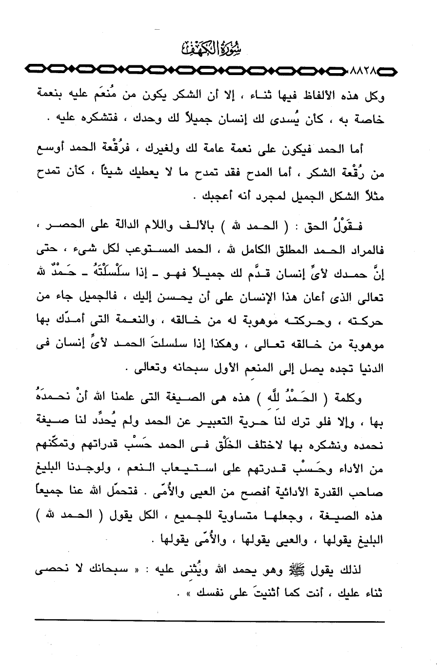 لذلك يقول صَلَّى اللَّهُ عَلَيْهِ وَسَلَّم َ وهو يحمد الله ويُثنِي عليه: «سبحانك لا نحصي ثناء عليك، أنت كما أثنيتَ على نفسك» .