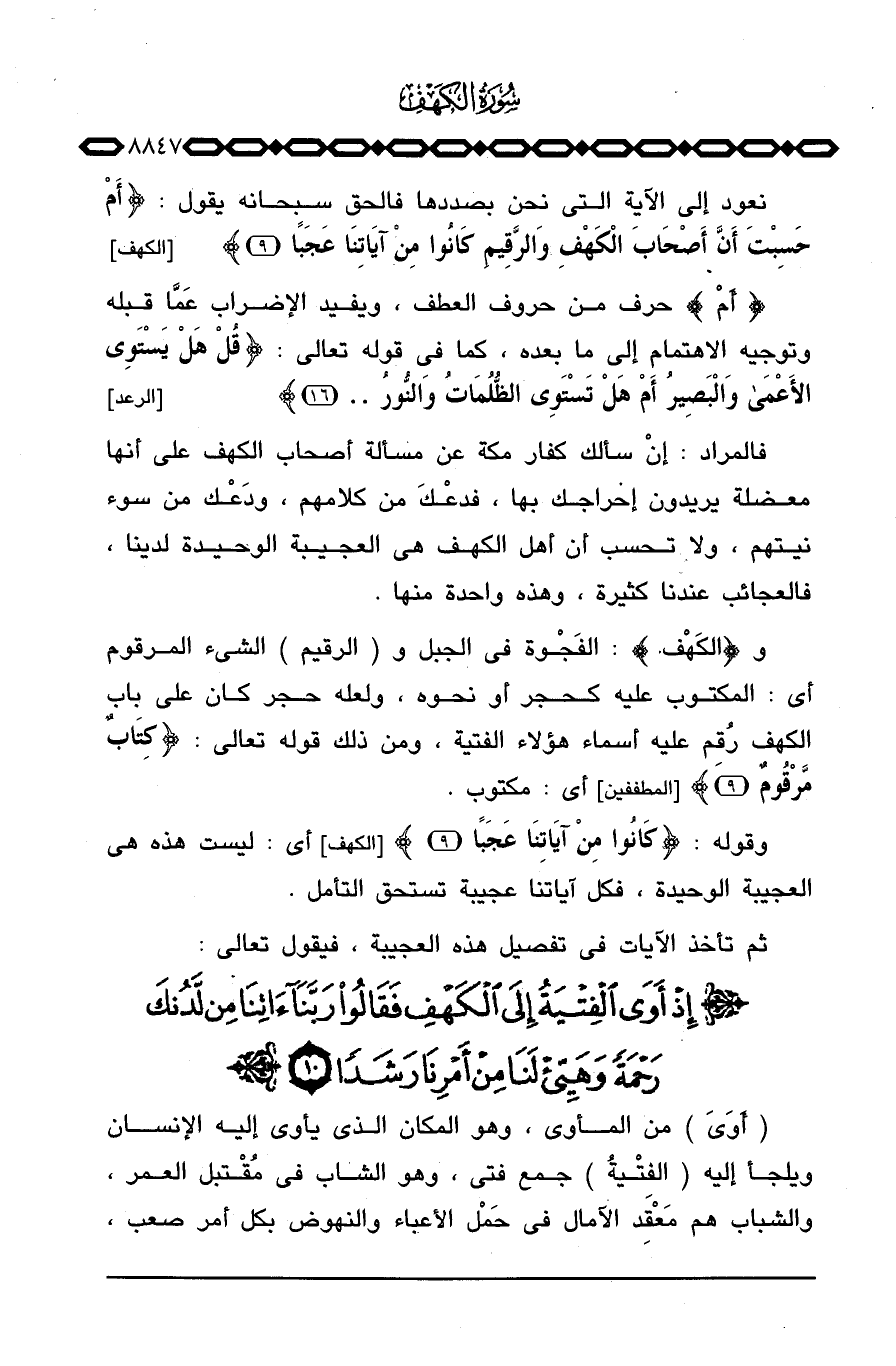 ثم تأخذ الآيات في تفصيل هذه العجيبة، فيقول تعالى: {إِذْ أَوَى الفتية إِلَى الكهف فَقَالُواْ رَبَّنَآءَاتِِنَا مِن لَّدُنكَ رَحْمَةً. .} .