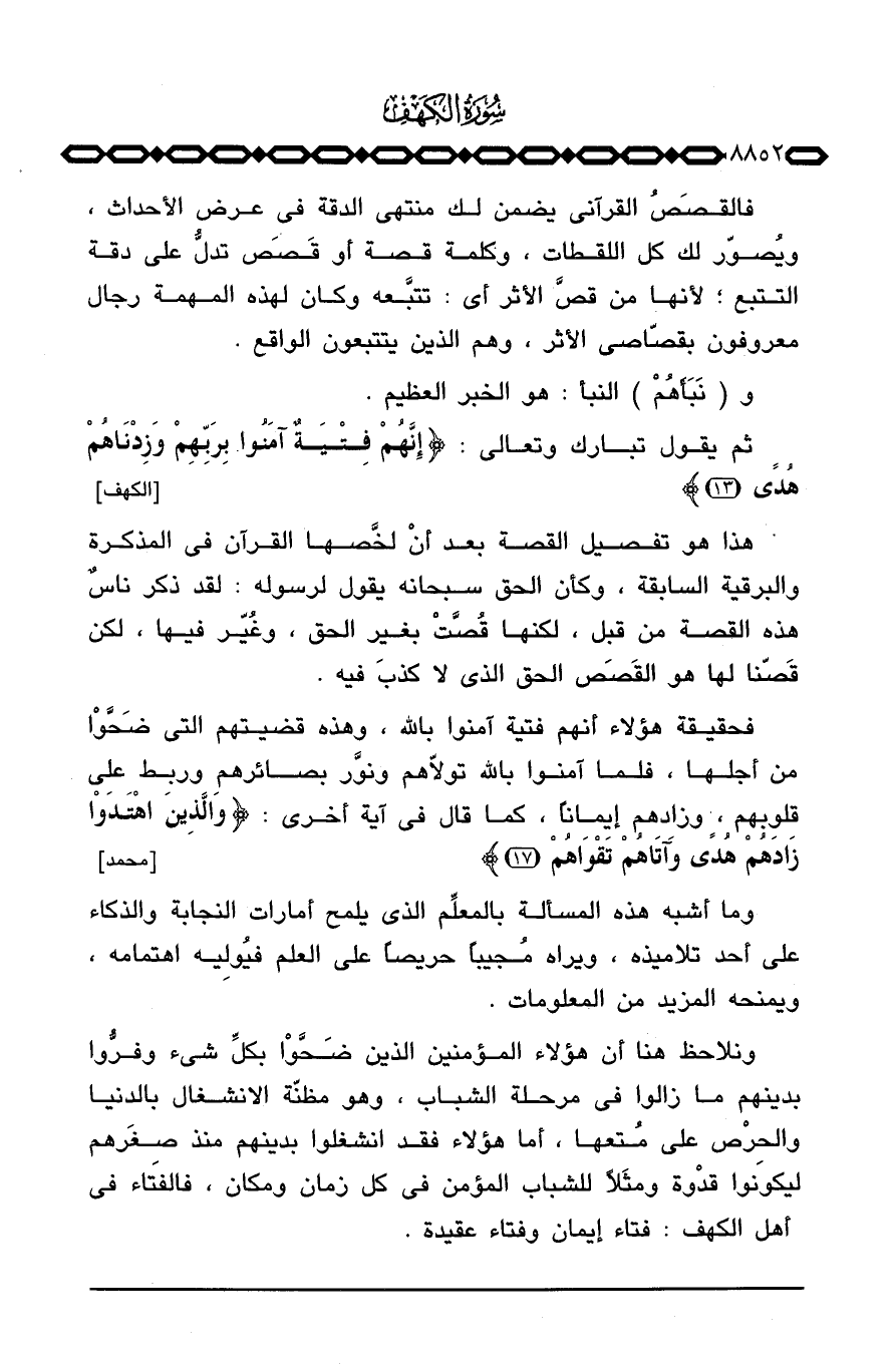 فحقيقة هؤلاء أنهم فتية آمنوا بالله، وهذه قضيتهم التي ضَحَّوْا من أجلها، فلما آمنوا بالله تولاّهم ونوَّر بصائرهم وربط على قلوبهم، وزادهم إيماناً، كما قال في آية أخرى: {والذين اهتدوا زَادَهُمْ هُدًى وءاتاهم تَقْوَاهُمْ} [محمد: 17]