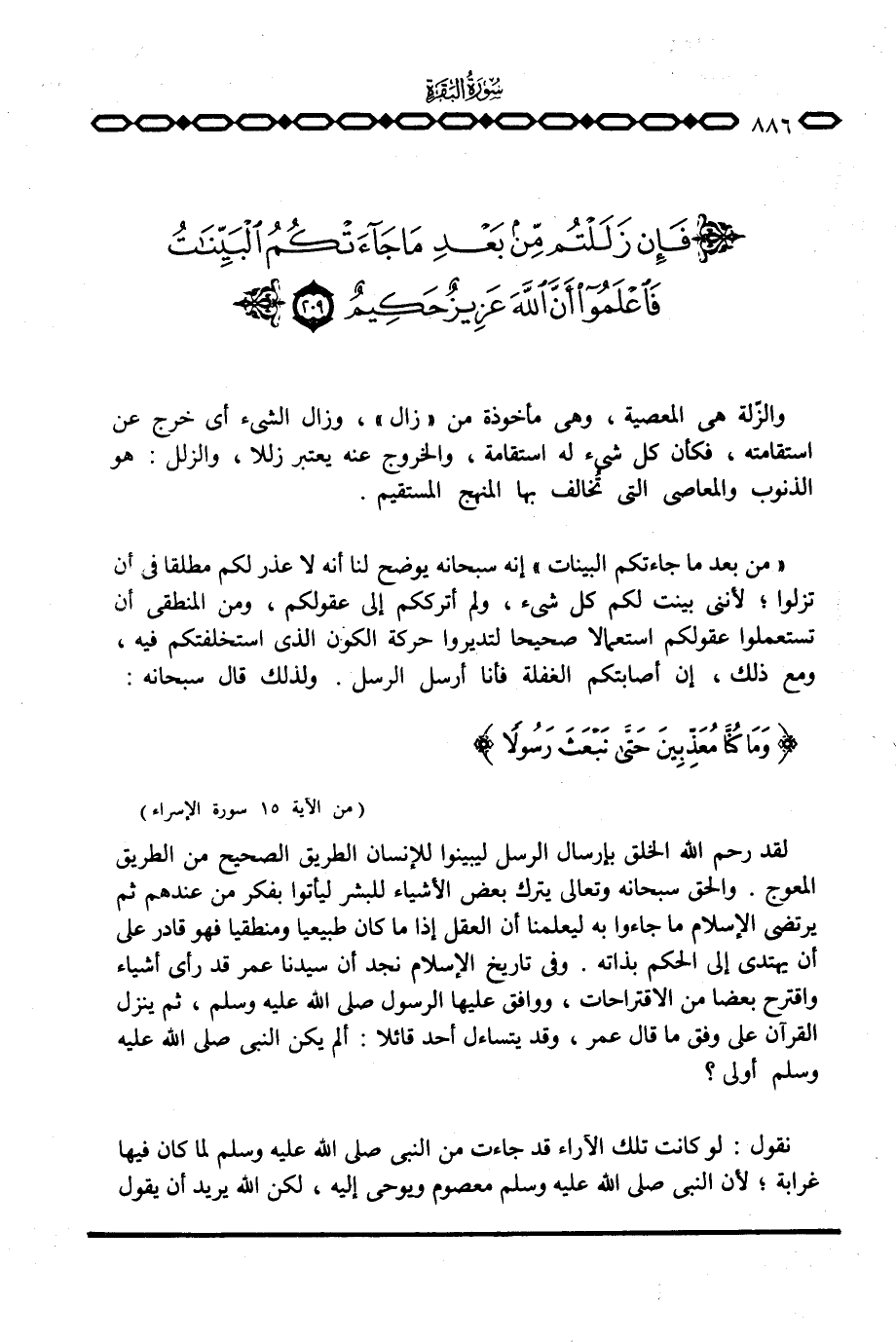 لقد رحم الله الخلق بإرسال الرسل ليبينوا للإنسان الطريق الصحيح من الطريق المعوج. والحق سبحانه وتعالى يترك بعض الأشياء للبشر ليأتوا بفكر من عندهم ثم يرتضي الإسلام ما جاءوا به ليعلمنا أن العقل إذا ما كان طبيعيا ومنطقيا فهو قادر على أن يهتدي إلى الحكم بذاته. وفي تاريخ الإسلام نجد أن سيدنا عمر قد رأى أشياء واقترح بعضا من الاقتراحات، ووافق عليها الرسول صَلَّى اللَّهُ عَلَيْهِ وَسَلَّم َ، ثم ينزل القرآن على وفق ما قاله عمر، وقد يتساءل أحد قائلا: ألم يكن النبي صَلَّى اللَّهُ عَلَيْهِ وَسَلَّم َ أولى؟