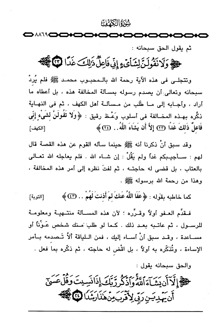 ثم يقول الحق سبحانه: {وَلاَ تَقُولَنَّ لِشَاْىءٍ إِنِّي فَاعِلٌ ذلك غَداً} .