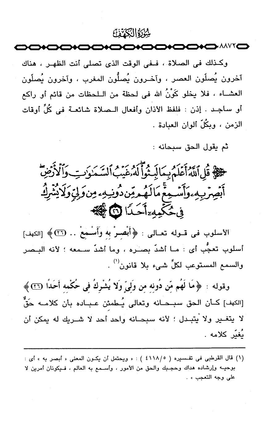 الأسلوب في قوله تعالى: {أَبْصِرْ بِهِ وَأَسْمِعْ. .} [الكهف: 26] وأسلوب تعجُّب أي: ما أشدّ بصره، وما أشدّ سمعه؛ لأنه البصر والسمع المستوعب لكلِّ شيء بلا قانون.