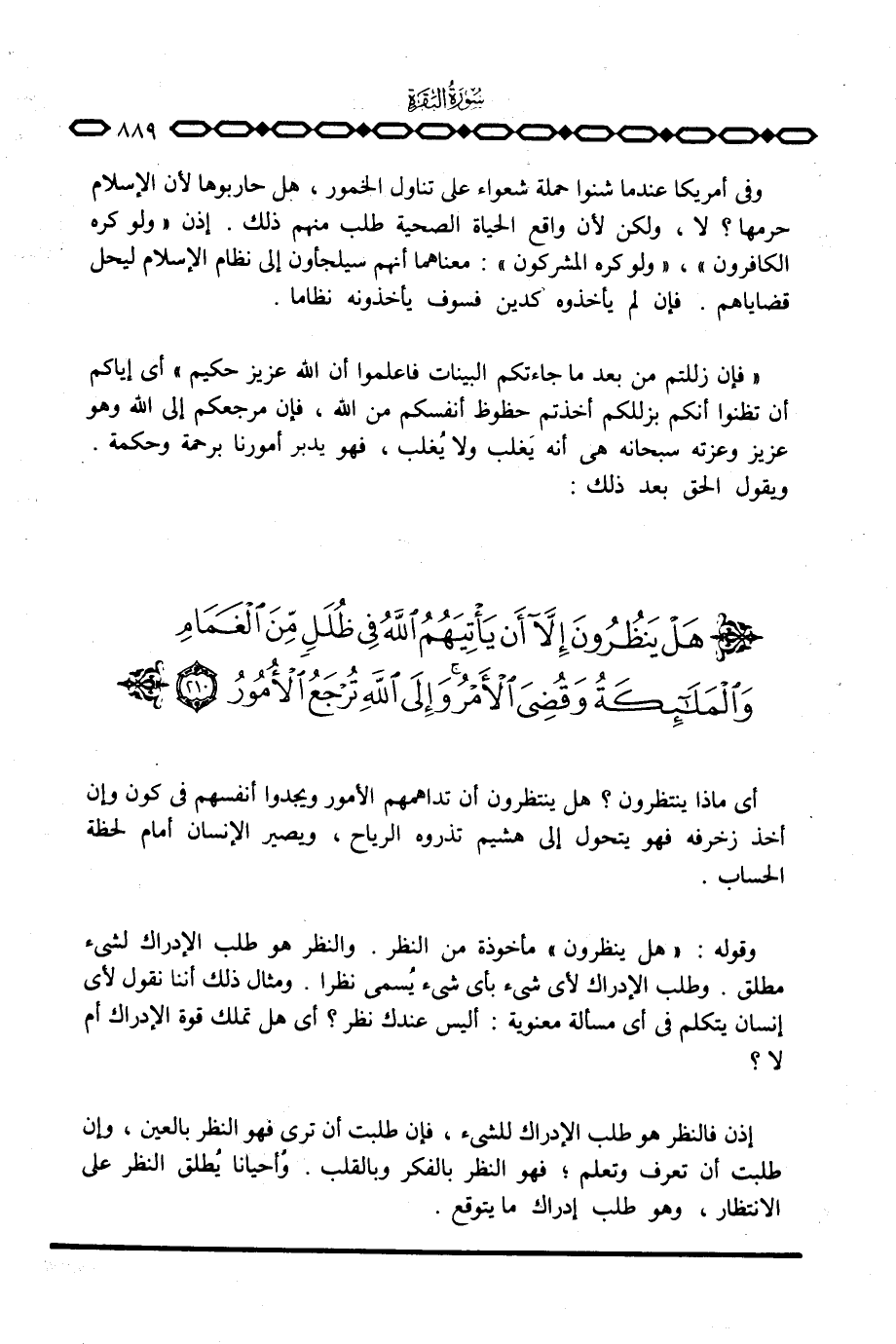وفي أمريكا عندما شنوا حملة شعواء على تناول الخمور، هل حاربوها لأن الإسلام حرمها؟ لا، ولكن لأن واقع الحياة الصحية طلب منهم ذلك. إذن {وَلَوْ كَرِهَ الكافرون} ، {وَلَوْ كَرِهَ المشركون} : معناهما أنهم سيلجأون إلى نظام الإسلام ليحل قضاياهم. فإن لم يأخذوه كدين فسوف يأخذونه نظاما.