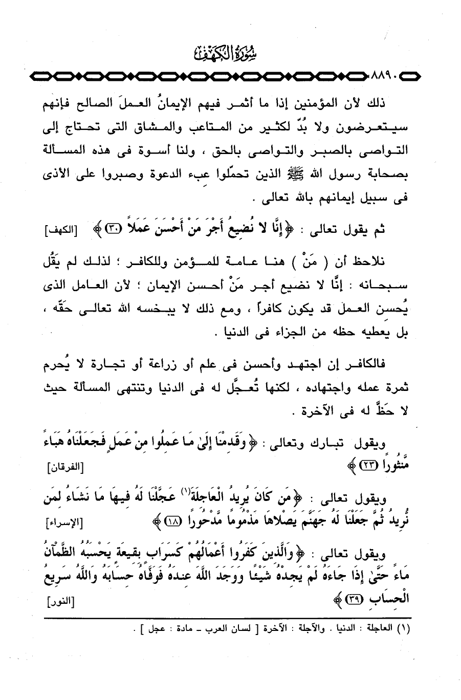 فالكافر إن اجتهد واحسن في علم أو زراعة أو تجارة لا يُحرم ثمرة عمله واجتهاده، لكنها تُعجَّل له في الدنيا وتنتهي المسألة حيث لا حَظَّ له في الآخرة.