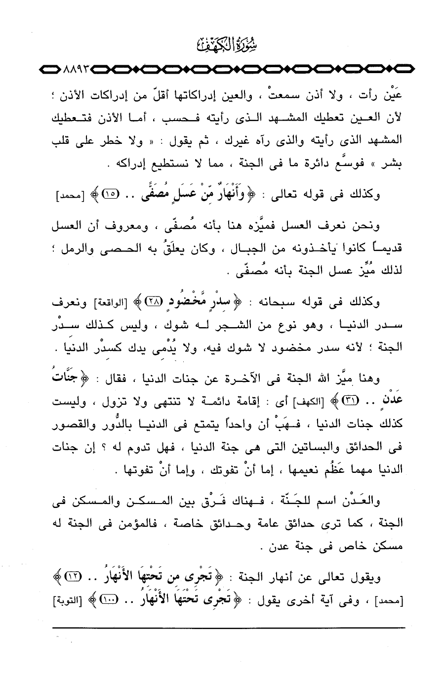 ونحن نعرف العسل فميَّزه هنا بأنه مُصفّى، ومعروف أن العسل قديماً كانوا يأخذونه من الجبال، وكان يعلَقُ به الحصى والرمل؛ لذلك مُيِّز عسل الجنة بأنه مُصفّى.