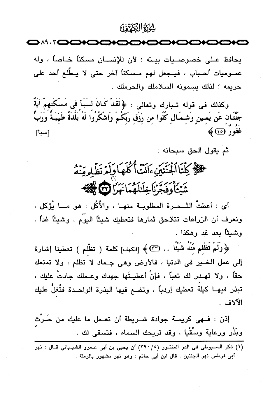 وكذلك في قوله تبارك وتعالى: {لَقَدْ كَانَ لِسَبَإٍ فِي مَسْكَنِهِمْ آيَةٌ جَنَّتَانِ عَن يَمِينٍ وَشِمَالٍ كُلُواْ مِن رِّزْقِ رَبِّكُمْ واشكروا لَهُ بَلْدَةٌ طَيِّبَةٌ وَرَبٌّ غَفُورٌ} [سبأ: 15] ثم يقول الحق سبحانه: {كِلْتَا الجنتينءَاتَتْ أُكُلَهَا وَلَمْ تَظْلِم مِّنْهُ شَيْئاً. .} .