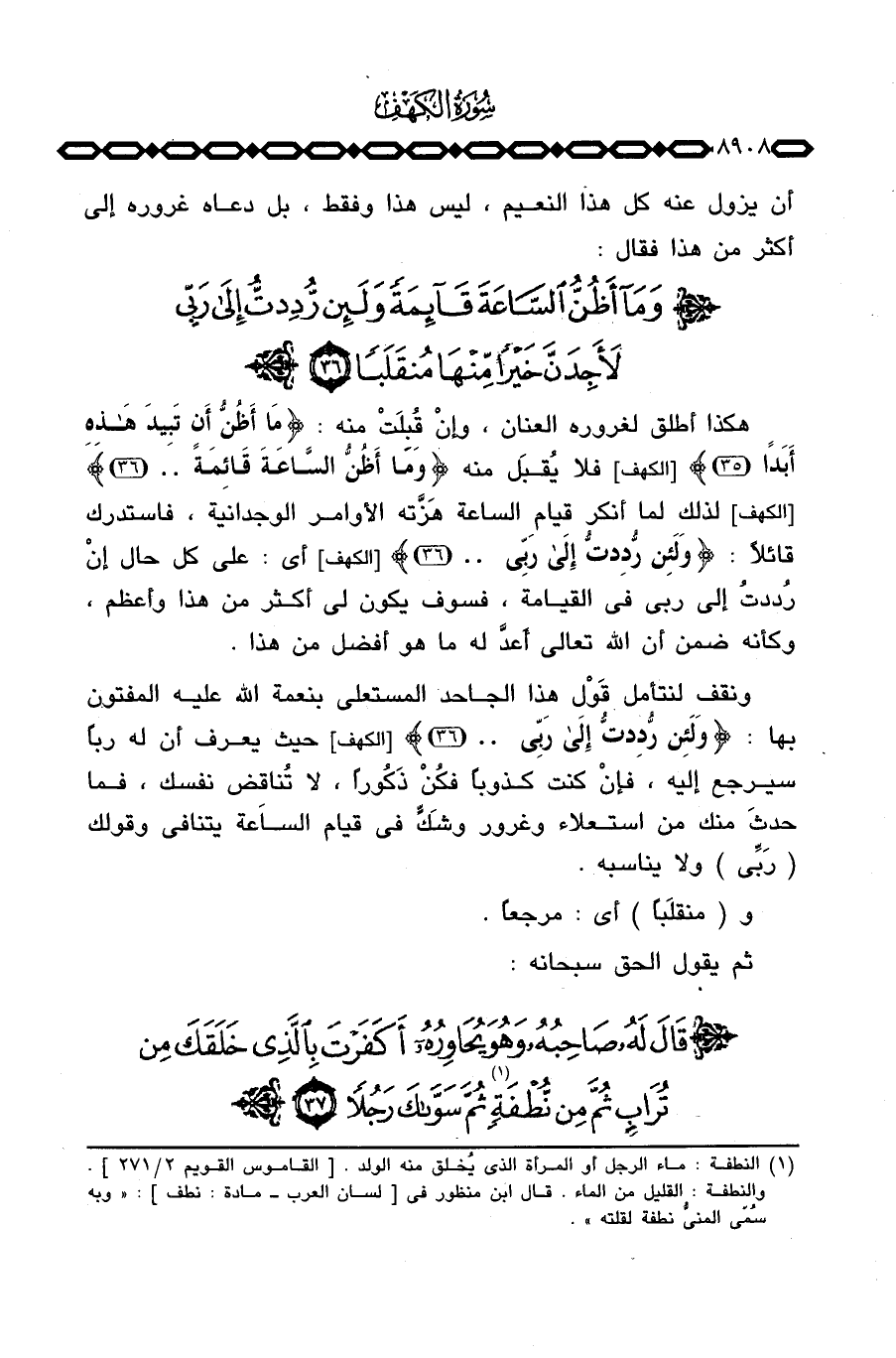 ونقف لنتأمل قَوْل هذا الجاحد المستعلي بنعمة الله عليه المفتون بها: {وَلَئِن رُّدِدتُّ إلى رَبِّي. .} [الكهف: 36] حيث يعرف أن له رباً سيرجع إليه، فإنْ كنت كذوباً فكُنْ ذَكُوراً، لا تُناقِض نفسك، فما حدَث منك من استعلاء وغرور وشَكٍّ في قيام الساعة يتنافى وقولك {رَبِّي} ولا يناسبه.