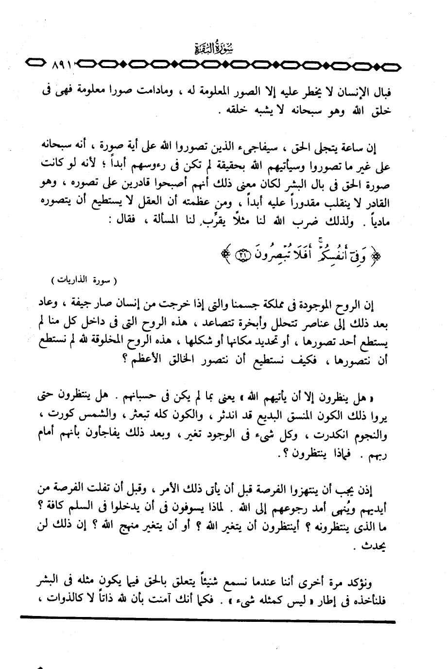 فبال الإنسان لا يخطر عليه إلا الصور المعلومة له، وما دامت صورا معلومة فهي في خلق الله وهو سبحانه لا يشبه خلقه.