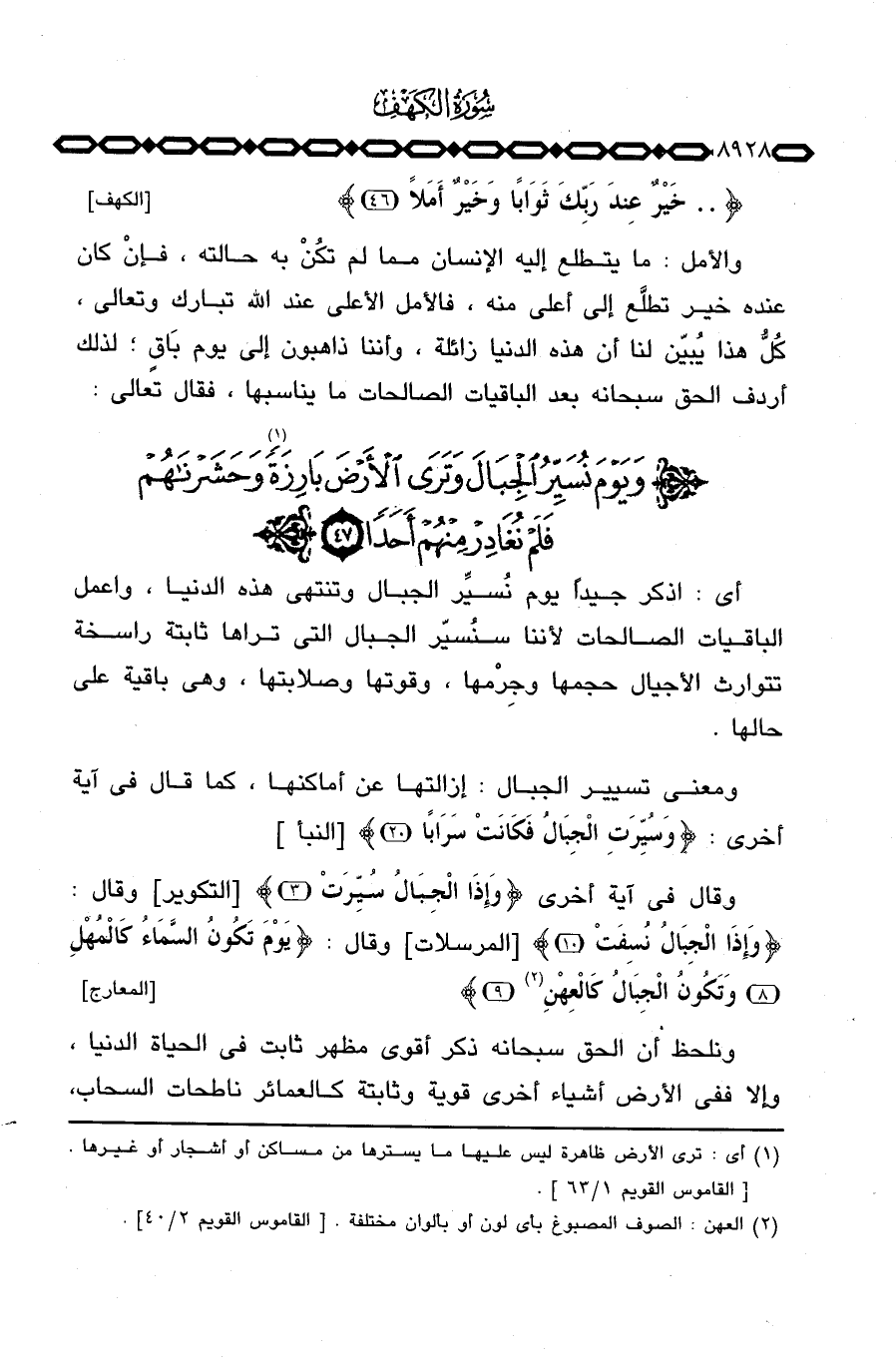 أي: اذكر جيداً يوم نُسيِّر الجبال وتنتهي هذه الدنيا، واعمل الباقيات الصالحات لأننا سنُسيّر الجبال التي تراها ثابتة راسخة تتوارث الأجيال حجمها وجِرْمها، وقوتها وصلابتها، وهي باقية على حالها.