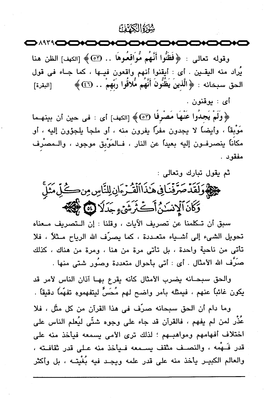 ثم يقول تبارك وتعالى: {وَلَقَدْ صَرَّفْنَا فِي هذا القرآن لِلنَّاسِ مِن كُلِّ مَثَلٍ ... } .