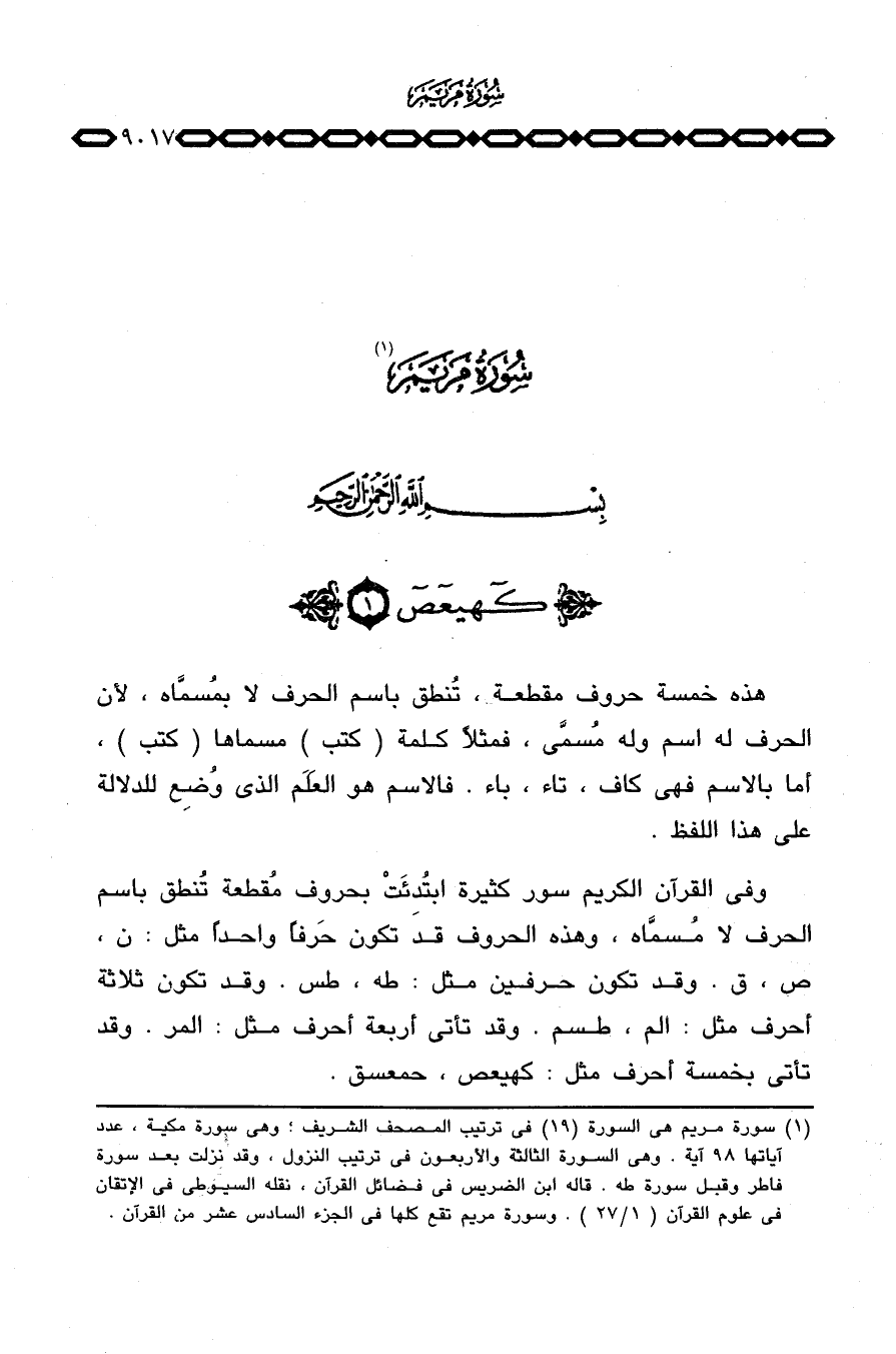 وفي القرآن الكريم سور كثيرة ابتُدِئَتْ بحروف مُقطعة تُنطق باسم الحرف لا مُسمَّاه، وهذه الحروف قد تكون حَرفاً واحداً مثل: ن، ص، ق. وقد تكون حرفين مثل: طه، طس. وقد تكون ثلاثة أحرف مثل: الم، طسم. وقد تأتى أربعة أحرف مثل: المر. وقد تأتى بخمسة أحرف مثل: كهيعص، حمعسق.