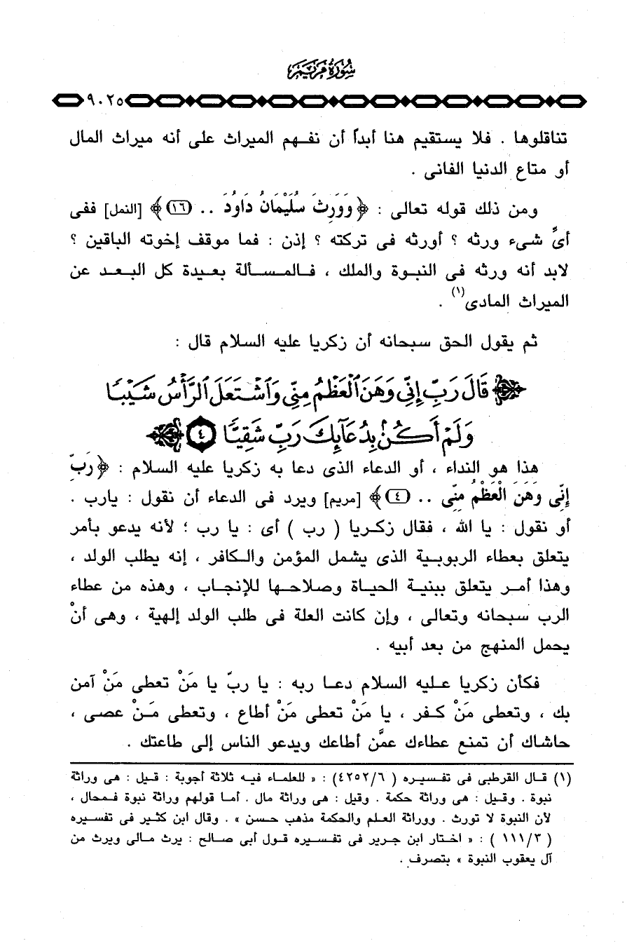 ومن ذلك قوله تعالى: {وَوَرِثَ سُلَيْمَانُ دَاوُودَ} [النمل: 16] ففي أيِّ شئ ورثه؟ أورثه في تركته؟ إذن: فما موقف إخوته الباقين؟ لا بد أنه ورثه في النبوة والملك، فالمسألة بعيدة كل البعد عن الميراث المادي.