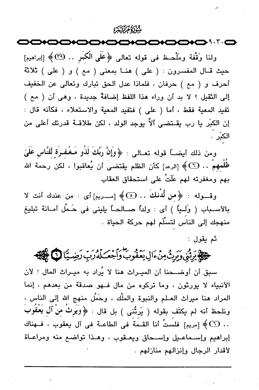 ثم يقول: {يَرِثُنِي وَيَرِثُ مِنْ آلِ يَعْقُوبَ}